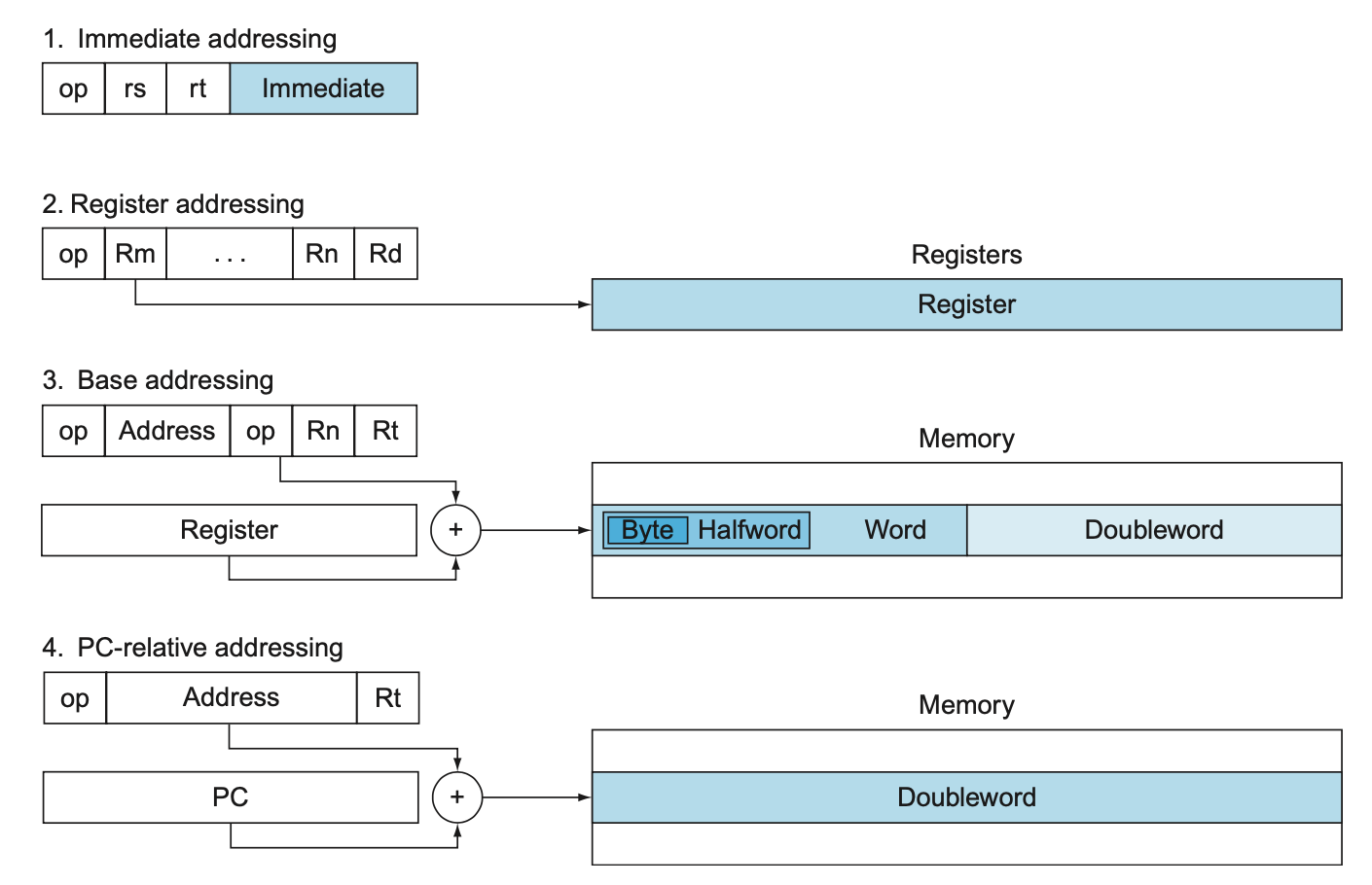 - LEGv8 addressed by doublewords, which means every address is a multiple of 8
