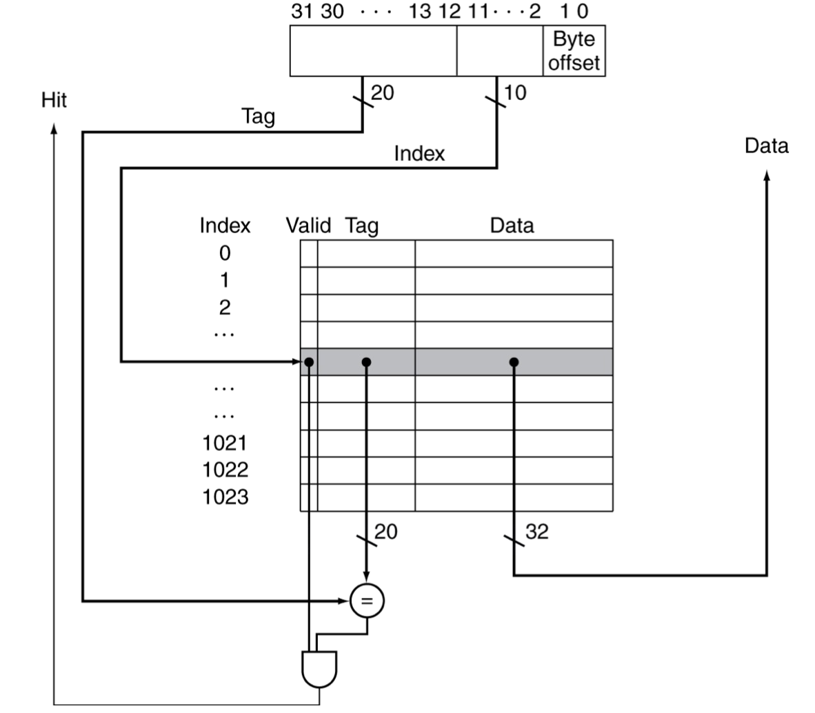 - Main memory: fully associative (not a cache but accessed in the same way)