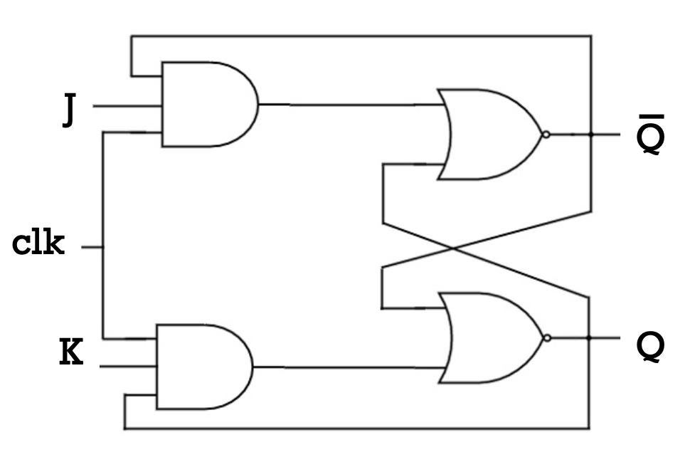 - Flip flop: Bistable but only updates when the clock changes (edge triggered)