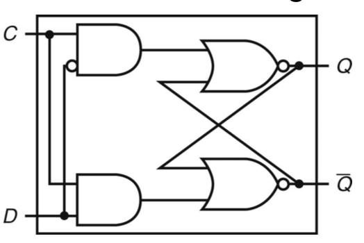 - Also eliminates the undefined state (1,1) of the SR-Latch