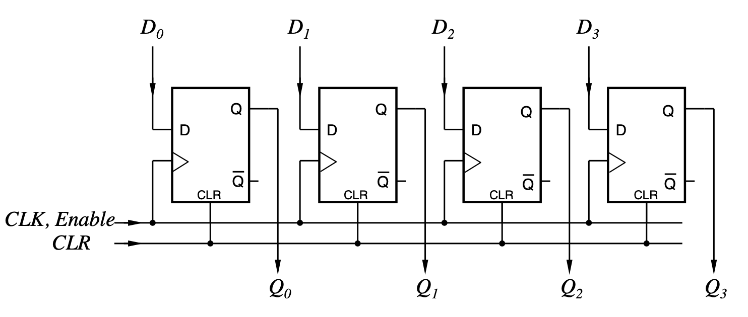 - a n-bit register consists of n flip flops that can store one n-bit word