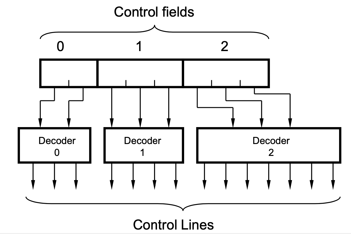 - Drawback: Wide microinstruction → large control memory