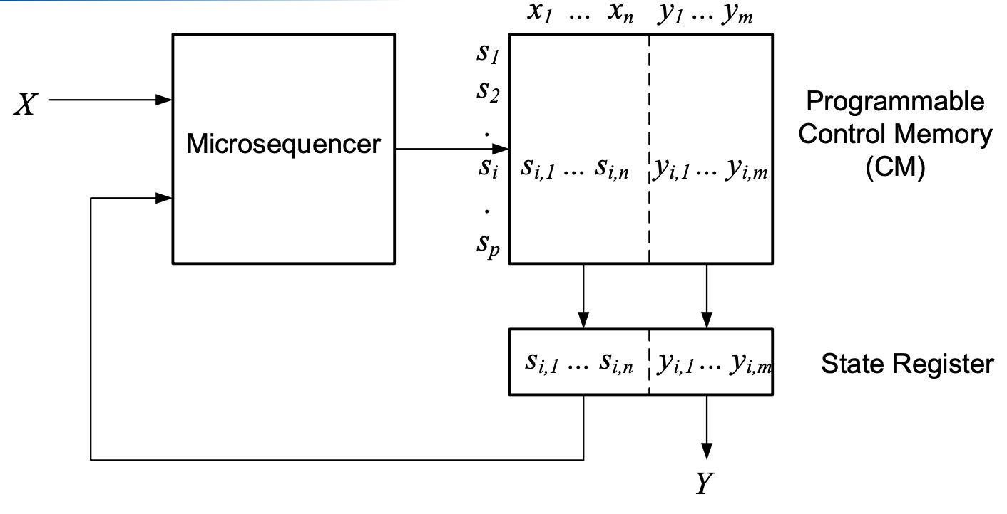 - Current state and outputs are defined using microinstructions
