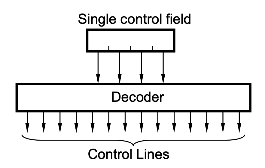 - Control signals that can not be simultaneously active are grouped together and binary coded