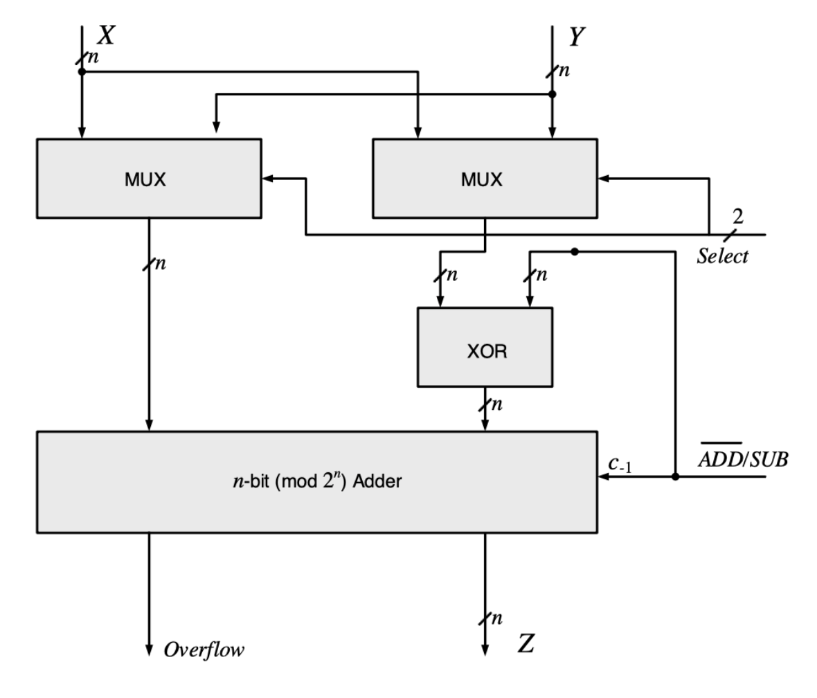 c−1 is set to 1 when subtracting to convert the 1’s complement calculated by the XOR into a 2’s complement