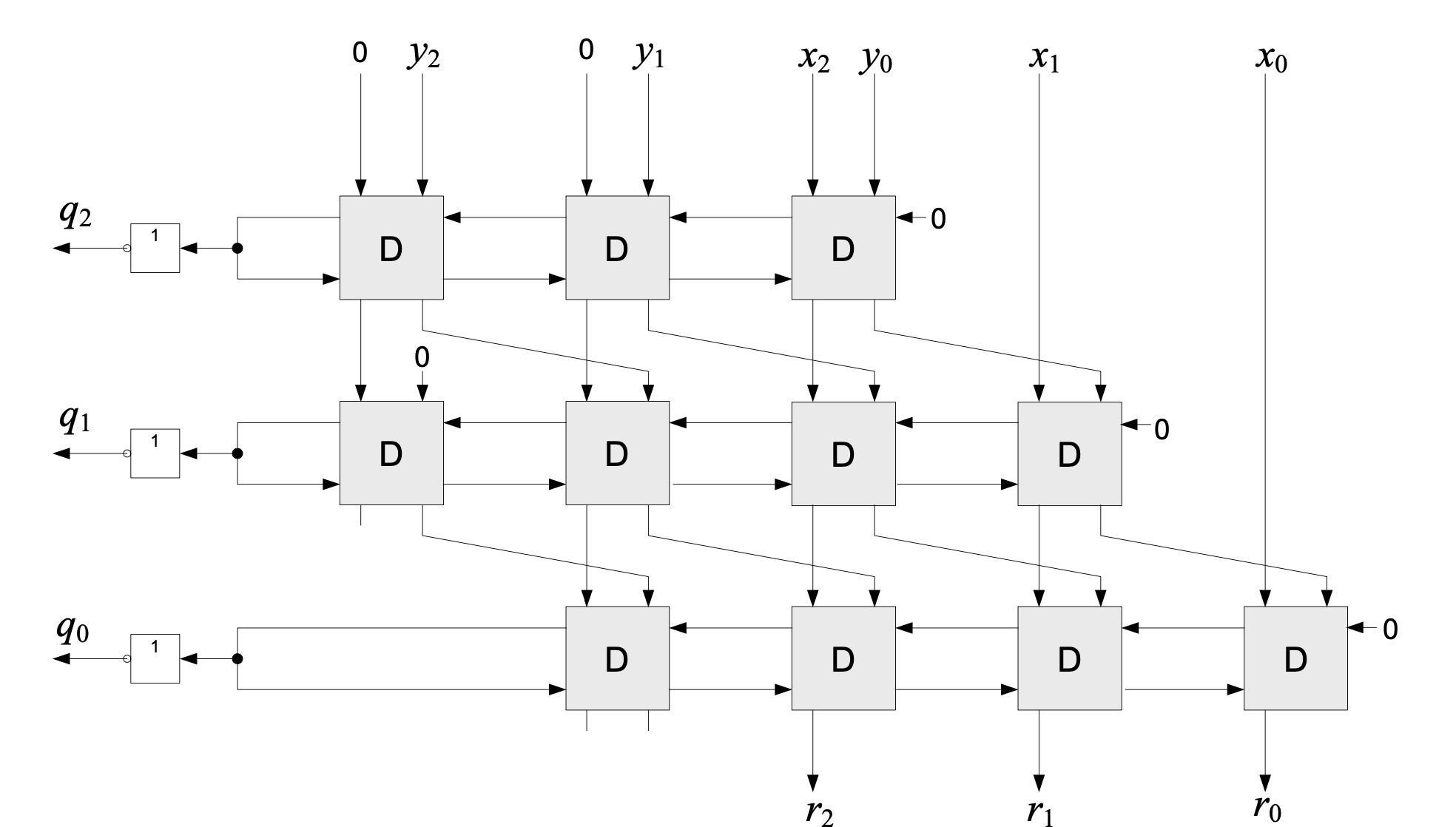 - 1 subtractor (ex: ripple-borrow subtractor) is needed per row