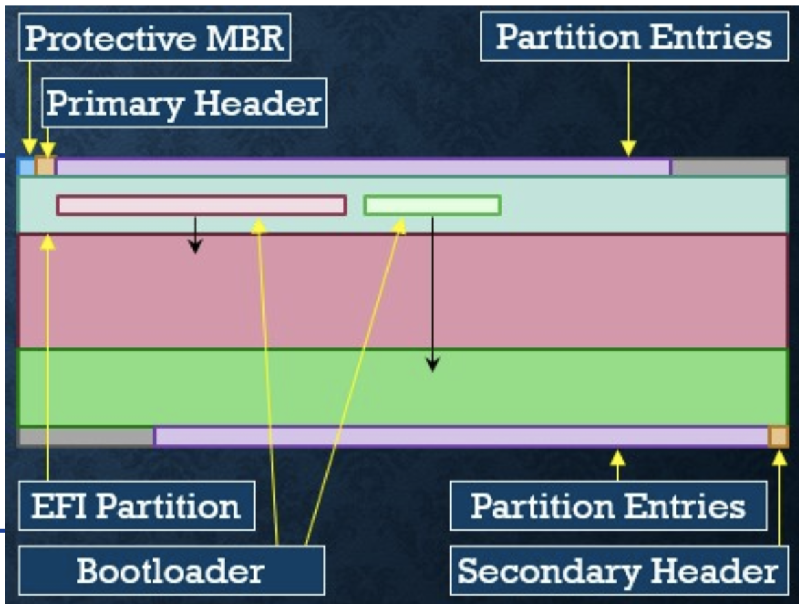 Protective Master Boot Record: Tells a BIOS machine that the disk is not invalid so it would not try to reformat it if it is accidentally plugged into a BIOS machine