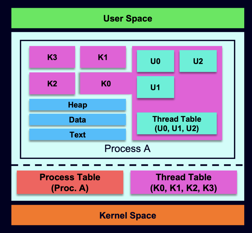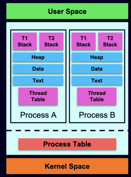 - Reduced context switch time (when within the same process)