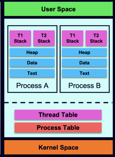 - Resources between threads of a Process